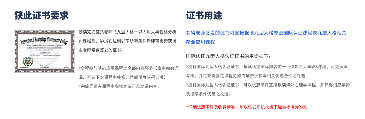 课程修读完毕将颁发九型人格证书,详情请看下文